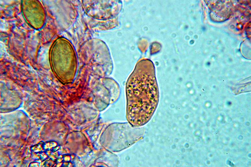 Comunque, ci sono molti punti discutibili, intanto la misura delle spore che molte volte arrivano a superare i 25 x 14 µm ma solitamente si attestano attorno ai 20 µm, la presenza di basidi bisporici ma anche alcuni tetrasporici, potrebbe anche passare perchè si parla sempre di percentuali e mai o quasi mai della totalità, la presenza di giunti a fibbia nell'imenoforo, e se vogliamo, la presenza di una base allargate quasi a bulbillo.