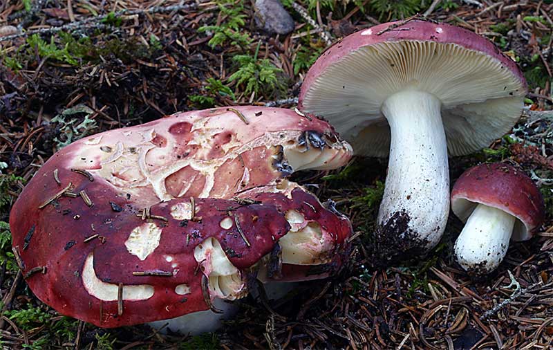 La cuticola rosso, rosso vinoso, violetta, con zone depigmentate fino al bianco la carne rosso vinosa sotto la cuticola per un buon spessore nera nelle erosioni ed iingrigente nella scorza del gambo e nella polpa di tutto il basidioma , le lamelle annerenti, specie in essiccata, il sapore dolce, l'habitat di conifera, ci fa riconoscere la specie macroscopicamente, l'aiuto della microscopia per verificare che le spore sono ornamentate da verruche isolate ed a volte aguzze, con plaga ilare reattiva al melzer, la pileipelli č formata da ife cilindriche, flessuose, ornate da una grossolane incrostazione.