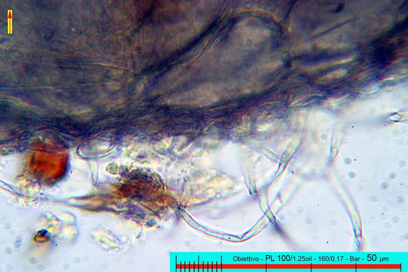 Partiamo dalla prima differenza che, nella nostra, vede i peli sparsi su tutta la superficie, fin quasi alla base e poco o per nulla agglutinati, ciò non è conforme alla prima delle due specie che possiede peli solo alla base del collo e inoltre, questi sono fortemente agglutinati, per quanto riguarda le spore, la forma e la misura sono differenti.