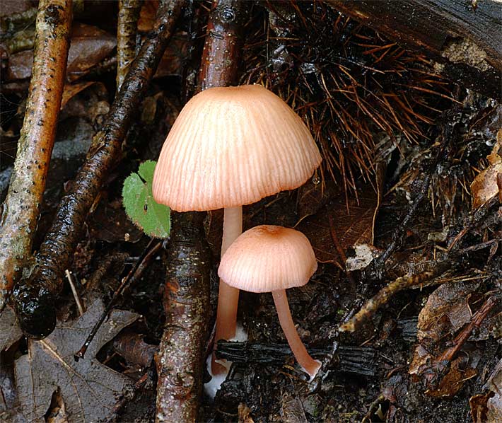 Entoloma roseotinctum Noordel. & Liiv, con pileo rosa-grigiastro, il gambo di colore grigio chiaro ed il pileo fibrilloso.