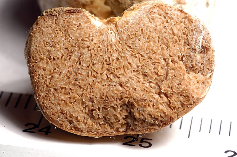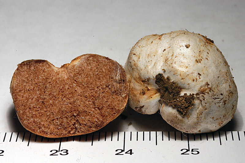 Non rimane che Hymenogaster niveus, che per, struttura esoperidiale filamentosa, forma, ornamentazione e misure sporali è da ricondurre alla raccolta in oggetto.