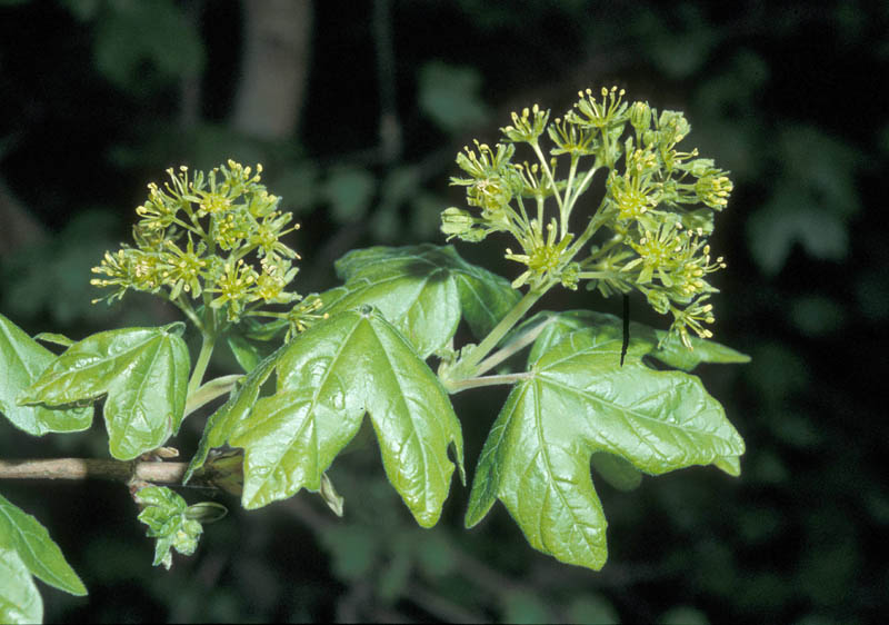 Acer pseudoplatanus L. L’acero di Monte o Sicomoro, il più imponente e robusto acero europeo, può raggiungere anche i 35 m. di altezza e ha una chioma globosa e ampia. Vive sulle Alpi e sugli Appennini di tutt’Italia, dalla zona collinare del castagno fino a circa 1700 m., su terreni fertili e ricchi di humus, in condizioni di umidità. Nel mio Appennino è spesso compagno del faggio; veniva piantato vicino alle case coloniche per dare ombra e mantenere al fresco i prodotti caseari.