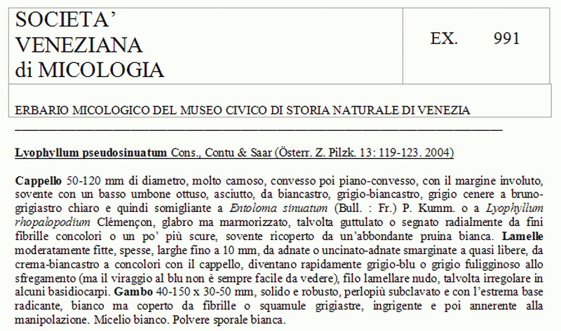 SOCIETA' VENEZIANA di MICOLOGIA - ERBARIO MICOLOGICO DEL MUSEO CIVICO DI STORIA NATURALE DI VENEZIA