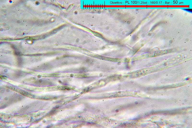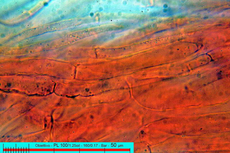 Le spore isodiametriche e di taglia relativamente piccola, i giunti a fibbia presenti in tutti i tessuti del basidioma e la pileipellis formata da una ixocute a ife spesse 3-7 µm, con pigmento intracellulare, non lasciano dubbi sulla sua identificazione.