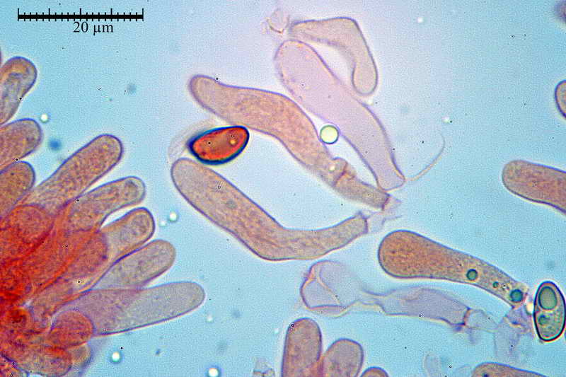 Basidi 34 - 42 x 10 - 13 µm, tatrasporici, con sterigmi lunghi fino a 8 µm, clavati.