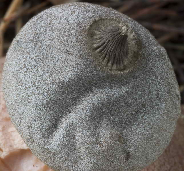 Endoperidio 25-30 x 20 mm, di forma arrotondata, leggermente schiacciato alle estremità, superficie di colore grigiastro, brunastro, bruno-grigiastro più o meno scuro, forforoso, granuloso, sabbioso,