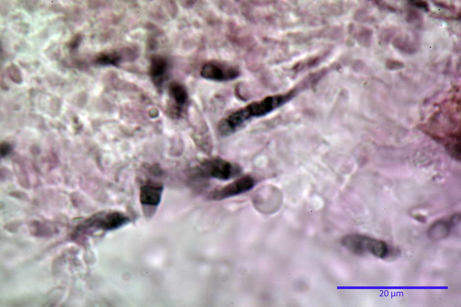 Le misure microscopiche sono state eseguite con il software di calcolo Mycométre gentilmente fornitoci dal Sig. Georges Fannechère e prelevabile a questo indirizzo http://mycolim.free.fr. Le misure sporali si riferiscono a 100 unità, effettuate in proiezione laterale, ottenute da sporata o prelevate da altre zone non imeniali, scartando spore ancora evidentemente immature e senza tener conto di eventuali ornamentazioni che, nel caso, si sono misurate a parte, per le rimanenti tipologie cellulari si sono eseguite un minimo di venti misure a tipologia.