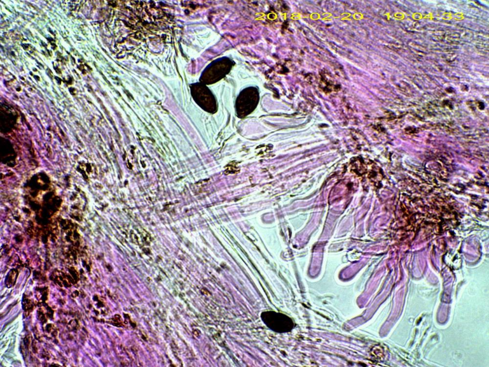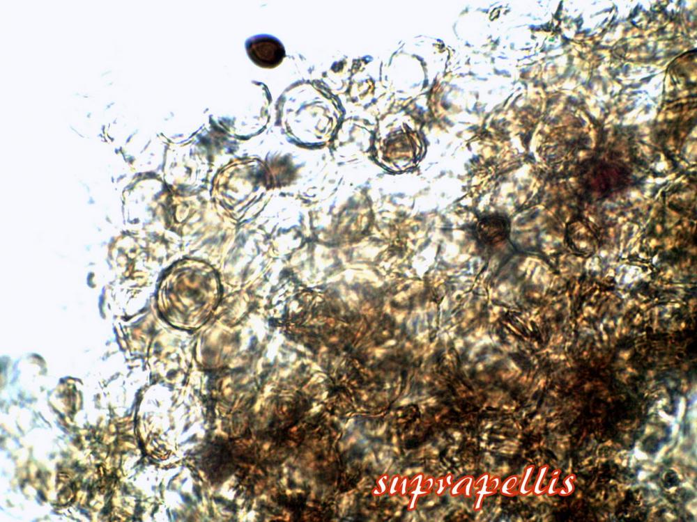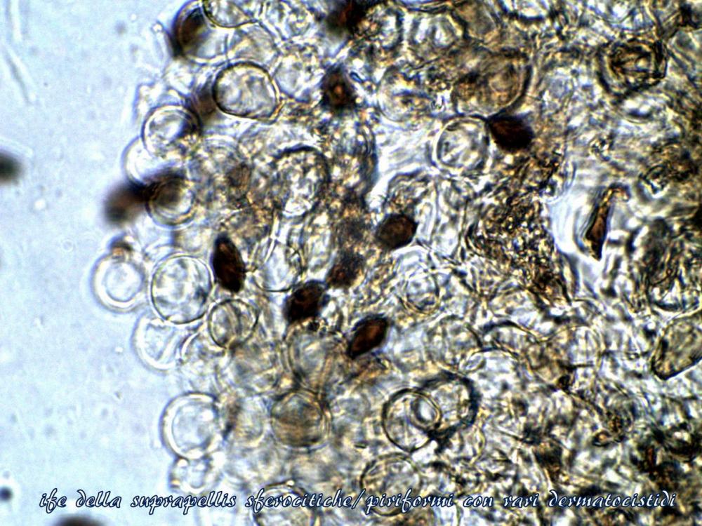 Cuticola: costituita di elementi sferocitici, alcuni con peduncolo, a formare un pseudoparenchima, inframezzati da dermatocistidi non troppo numerosi.