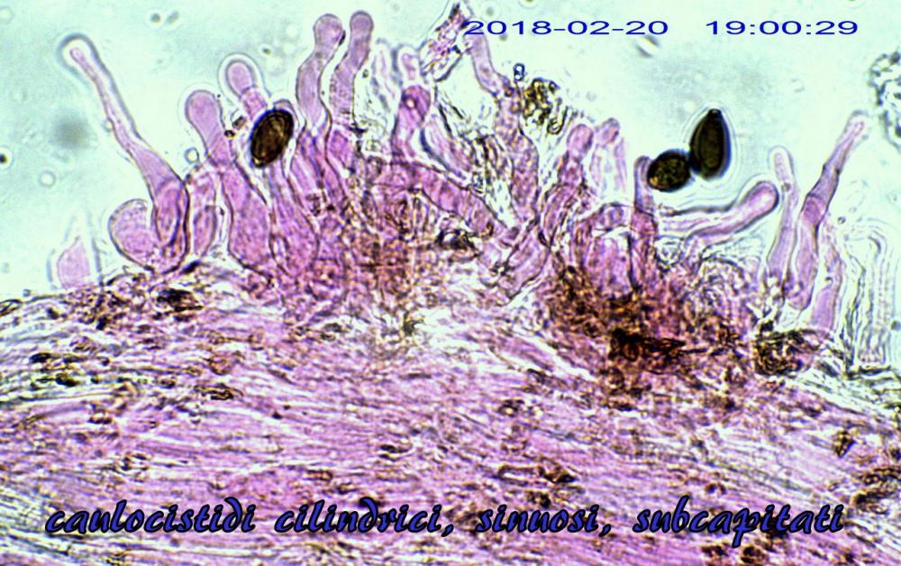 Caule: presenti numerosi caulocistidi da sublageniformi a subcilindrici, con apice di uguale spessore o più raramente subcapitulato, flessuosi, ialini, disposti a ciuffi nella porzione superiore dello stipite, frammisti a paracistidi sferopeduncolati.
