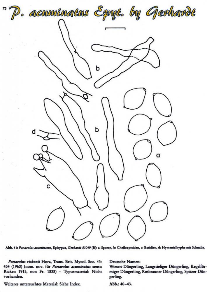 Panaeolus acuminatus Quél., Hyménomycètes, Fasc. Suppl. (Alençon): 621 (1874) v. acuminatus (autonimo).