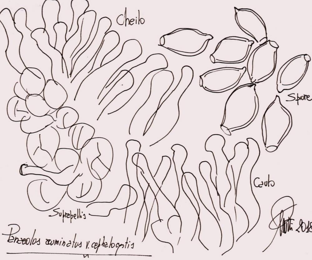 Panaeolus acuminatus (Schaeff.) Gillet var. cephalocystis E. Ludw., Pilzkompendium (Eching) 1([2]): 492 (2001).